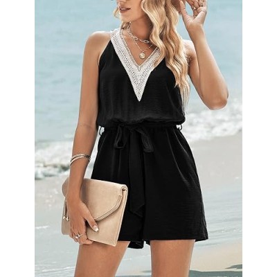 Womens Summer Rompers V Neck Beach Casual Tank Romper Sleeveless Trendy Cute Jumpsuits