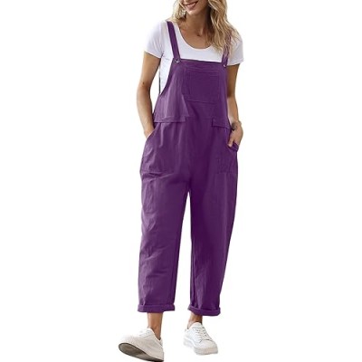 Women Long Casual Loose Bib Pants Overalls Baggy Rompers Jumpsuits with Pockets