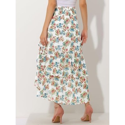 Floral Ruffle Skirt for Women's Wrap Tiered Asymmetrical Chiffon Skirts