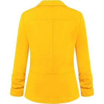 Womens Casual Blazer Pockets Open Front Cardigan Work Office Jacket 3/4 Sleeve