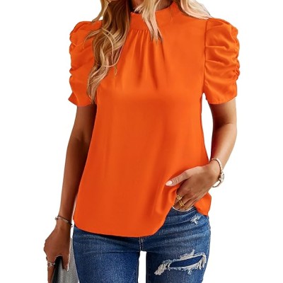 Women's Summer Boho Shirt Top Ruffle Short Sleeve Frill Trim Mock Neck Floral Solid 2024 Casual Blouses Shirts Tops