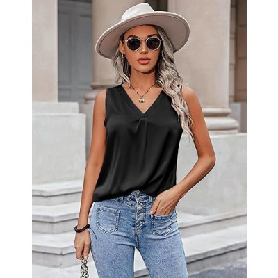 Womens 2024 Silk Satin Tank Tops V Neck Casual Cami Sleeveless Camisole Blouses Summer Basic Tank Shirt