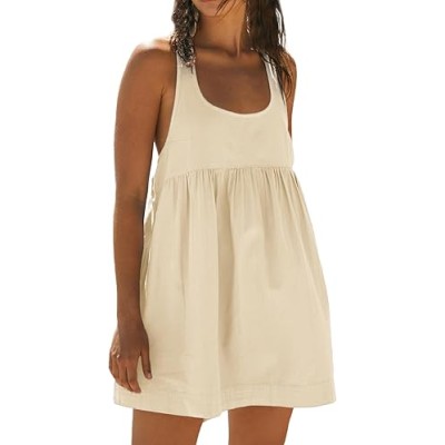 Women's Casual Summer Square Neck Sleeveless Tank Mini Dress Loose Racerback Sundress Athletic Beach Short Dress