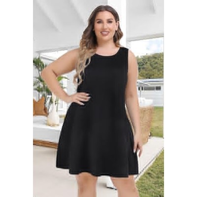 Plus Size Summer Dresses for Women Sleeveless Pockets Beach Tshirt Tank Sundress