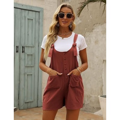 Women's Casual Summer Cotton Linen Rompers Overalls Jumpsuit Shorts