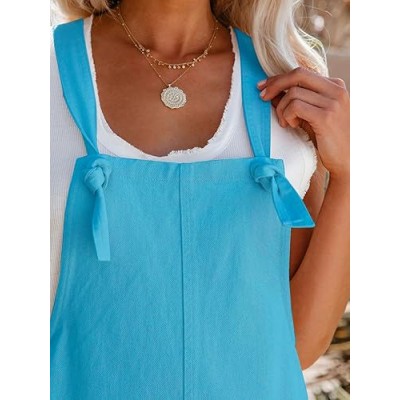 Women's Summer Casual Sleeveless Rompers Loose Spaghetti Strap Shorts Overalls Jumpsuit with Pockets